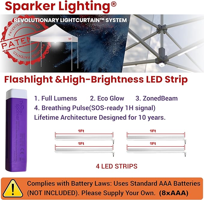 - 3.4-MODE SMART LIGHTING SYSTEM Integrated Flashlight + 4× LED Strips (20 Lumens/ft) | One-Touch High/Low/SOS/Warm Light | 360° Illumination in 2 Seconds | Night Operation & Emergency Ready