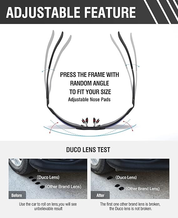 - 【CARBON FIBER TEMPLE STRENGTH】: Carbon fiber temples are ultra-light, ultra-hard, flexible, corrosion-resistant, non-allergenic, non-irritating, totally skin-friendly. Good choice for Driving, Fishing, Climbing, Running, Hiking, Cycling, Skiing, Boating.