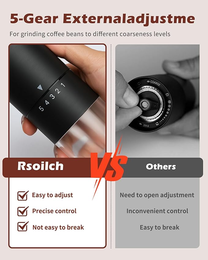 - Manual Coffee Grinder With Ceramics Burr For Espresso,French Press,5 Adjustable Settings,Hand Maker with Built-In Burr,For Home Use and Camping Travel,Coffee Bean Grinders With Hand Crank