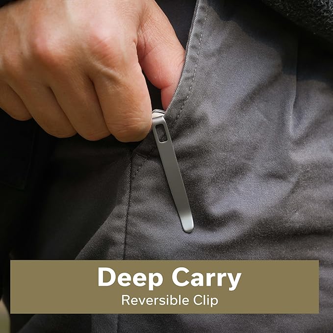 - Reversible Clip: A low-profile deep pocket carry clip is provided that can set up for left or right hand carry