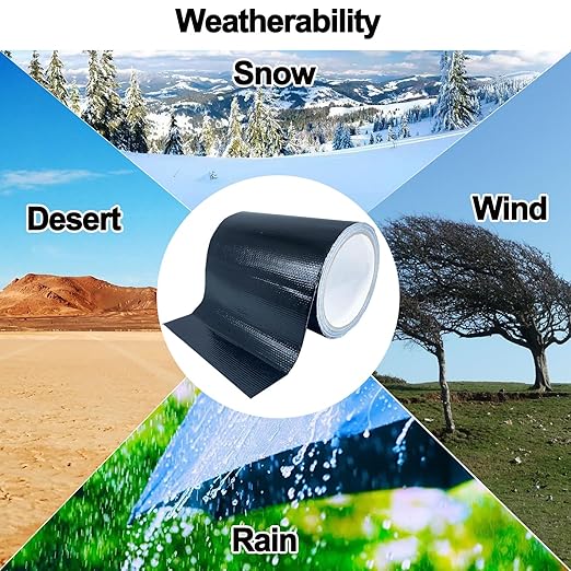 - Adaptable to all weather conditions: With excellent water, weather and heat resistance, tarp tape is adaptable to any weather conditions such as rain, snow, wind, sunny, desert and so on. It is recommended to use a blow dryer in cold weather.