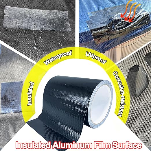 - Exceptional Durability: Reinforced with fiberglass, tent repair tape offers exceptional tear and puncture resistance. It insulated with an aluminum film surface. This ensures that it is waterproof, anti-abrasion, corrosion-resistant, uvproof and heat-resistant.Can be used for insulation, sealing, and anti scalding of buildings, air conditioners, and appliances