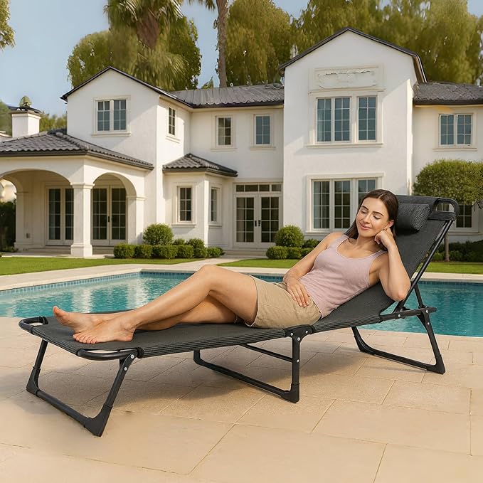 - 4 POSITIONS ADJUSTABL: Our heavy duty portable camping bed come equipped with a 4-position locking system, offering versatility for your comfort. Whether you prefer to sit upright, recline, or lay flat, you can easily find the perfect position to suit your relaxation needs.