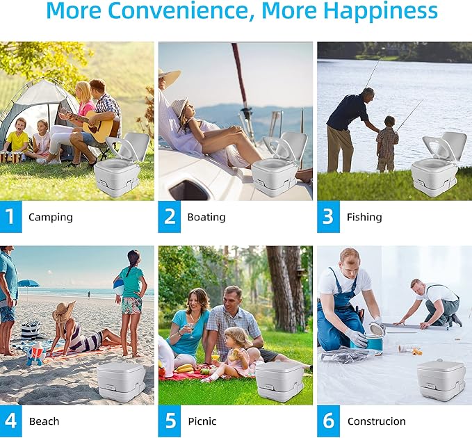- MULTI PURPOSE USE: The portable potty can be used for outdoor and camping activities, car, RVs, boats, mobile home use, trailer, marine, van, construction site places with inadequate sanitary facilities for field operations; Also especially suitable for pregnant women, the elderly, patients, etc
