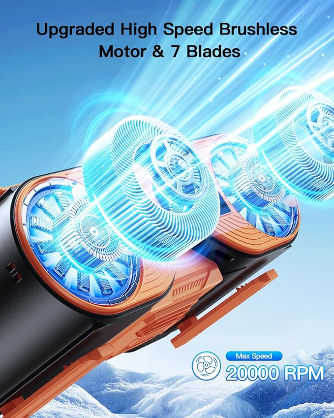 - 【Powerful & Refreshing Cooling】Powered by a high-performance brushless motor (up to 20,000 RPM) and sleek propeller-style blades, this portable neck fan delivers strong, refreshing airflow through an advanced grille. Crafted with reinforced materials, its durable blades ensure long-lasting performance you can rely on