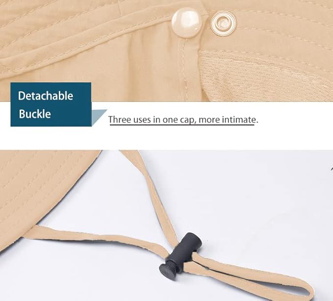 - 360¡ã Sun Protection & Detachable -- This Sun Hat Combined With Face & Neck Flap (flap Are Removable) Which Can Keep The Sun Off Your Head, Face And Neck. Adjustable Chin Strap To Ensure That The Hat Can Maintain Comfortable Conditions Even In Strong Winds.