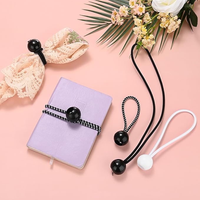 - [Size & Package] - Length: 380mm / 4"; Plastic Ball Diameter: 27mm / 1.1”; Rope Diameter: 4mm / 0.16"; Package Includes: 50Pcs x Ball Bungee Cords