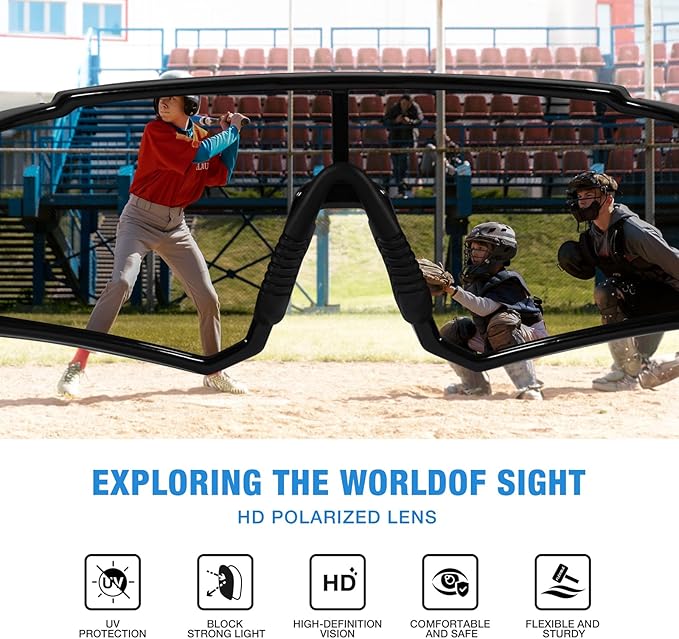 • 【ULTRA LIGHT TR90 FRAME】 The youth sports sunglasses weigh only 24g, perfect for kids to wear. Ideal polarized sunglasses for outdoor sports, such as baseball, softball, golf, cycling, hiking, running, etc.