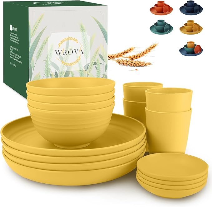 - โฆใ๐ฃ๐ฎ๐ฐ๐ธ๐ฎ๐ด๐ฒ ๐๐ป๐๐ถ๐ฑ๐ฒใ - Wrova 16pack wheat straw dinnerware sets contains 4pcs 10inches wheat straw plates with deep edge,4pcs 26oz wheat straw bowls,4pcs 12oz wheat straw cups,4pcs sauce plates. All of them are unbreakable,bpa and lead free,lightweight and easy to clean.