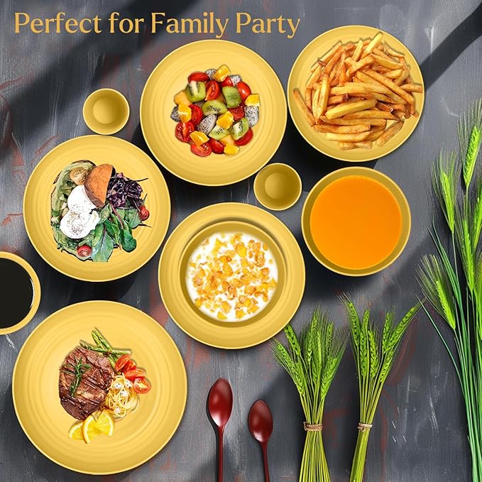 - โฆใ๐๐๐ง๐จ๐๐ฉ๐๐ก๐ ๐๐จ๐๐๐ใ- Suitable for all ages, these wheat straw dinnerware sets are perfect for various occasion, such as parties, picnics, camping, and everyday meals at home, school, office, or while traveling. Lightweight and unbreakable,they are ideal tableware for kids.