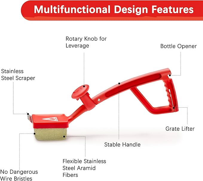 - PROFESSIONAL GRILL ACCESSORIES - Trusted by BBQ pros. This grill cleaner brush features a sturdy polypropylene handle, comfortable grip, and a rotary knob for added pressure when scraping. Designed for durability, this grilling tool is perfect for frequent grillers.