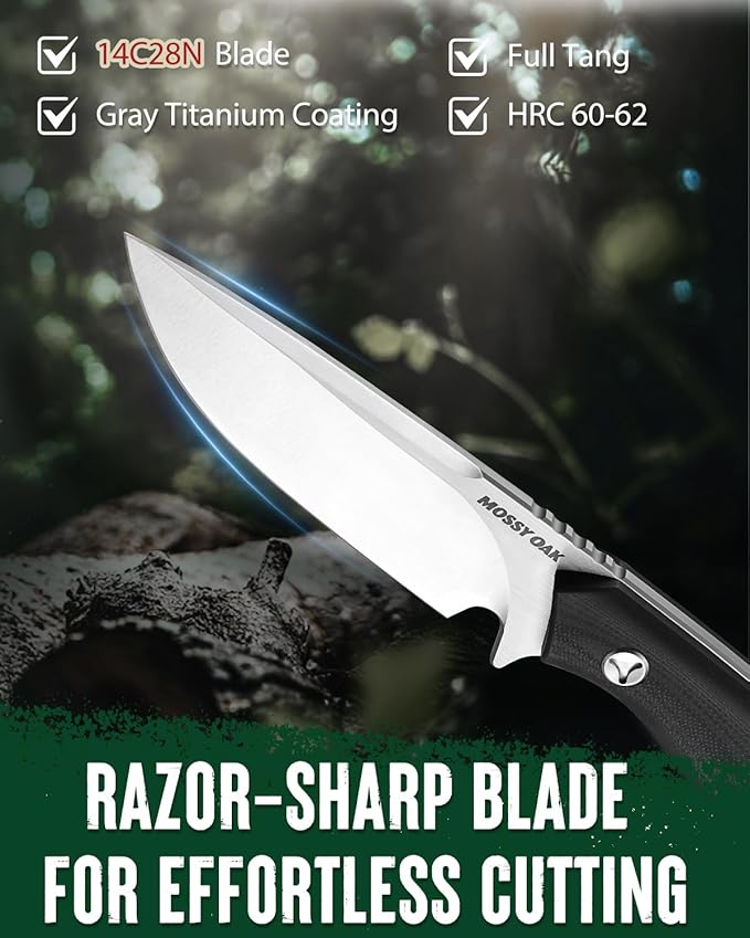 - Razor-Sharp Blade for Effortless Cutting: Crafted from premium 14C28N stainless steel, this 8.75-inch fixed blade delivers exceptional edge retention, corrosion resistance, and cutting performance for all your outdoor tasks