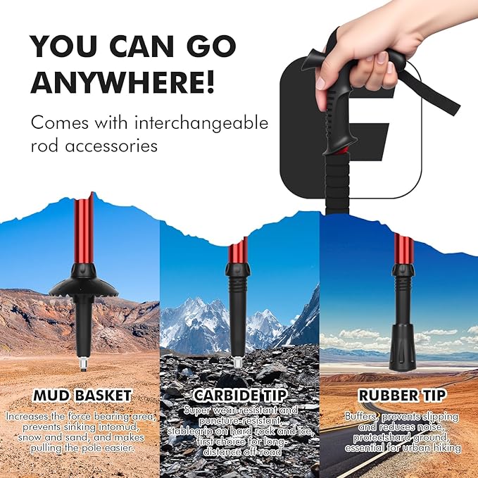 - LIGHTWEIGHT AND STURDY: The shaft is made of 7075 aluminum alloy, which is sturdy, durable, and resistant to deformation. The trekking pole weighs only 0.66 pounds, allowing you to carry it easily on your travels without any strain.