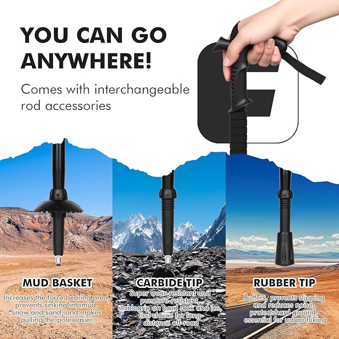 - LIGHTWEIGHT AND STURDY: The shaft is made of 7075 aluminum alloy, which is sturdy, durable, and resistant to deformation. The trekking pole weighs only 0.66 pounds, allowing you to carry it easily on your travels without any strain.
