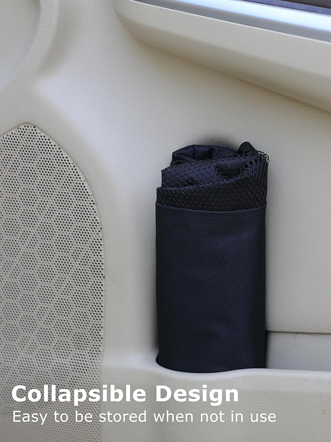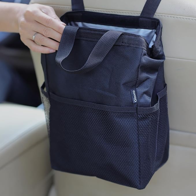 - EXTRA STORAGE SPACE : Car trash bag comes with mesh pockets on the outside of the trash bin for storing small items like wipes, water bottle, snack packs etc. Trash can for cars can be used as a car storage bag, car organizers, car stuff, car gadgets, makes everything well organize.