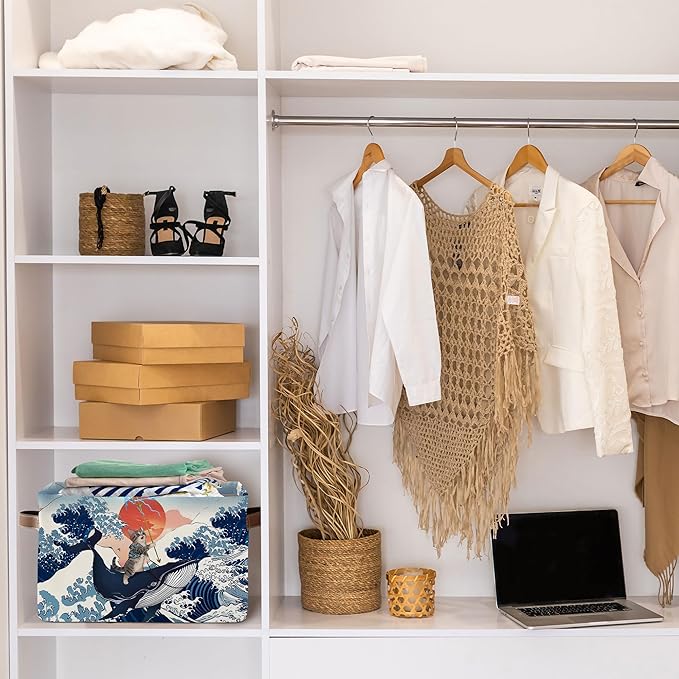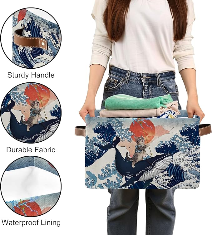 - 【WHALE CAT THEMED GIFTS】Our whale cat themed Rectangle Storage Baskets make perfect gifts for any occasion, including Christmas, Birthday, Father's Day, Mother's Day, Thanksgiving, and Friendship Day