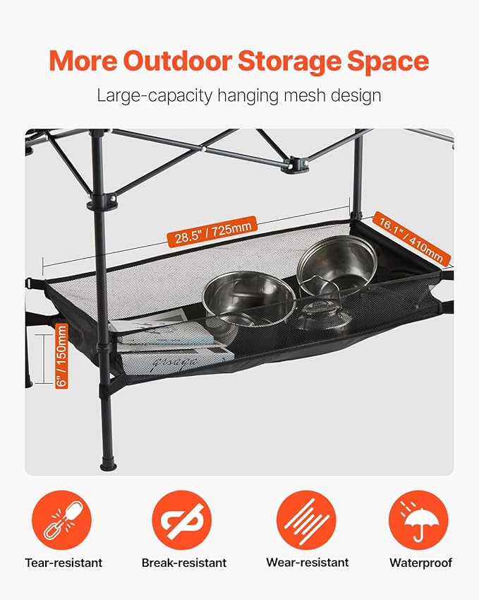 VEVOR Folding Camping Table, Adjustable Height Portable Side Tables, Aluminum MDF Beach Table with Mesh Layer, Carrying Handle, Lightweight Compact for Outdoor Picnic BBQ Cooking (45inch-Black)