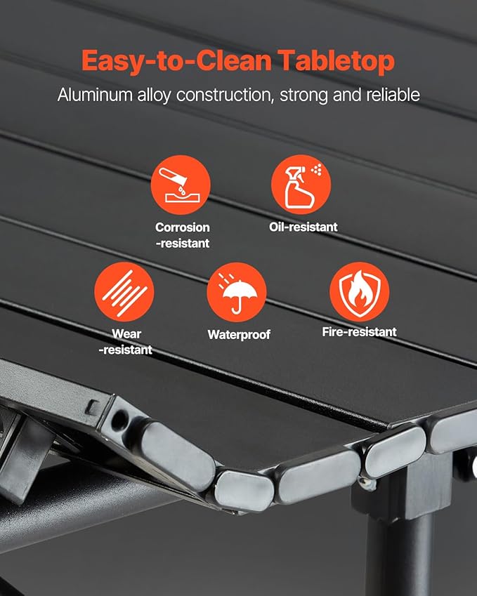 - MDF Surface: The scratch-resistant MDF tabletop offers a smooth, elegant finish ideal for casual indoor gatherings or outdoor. The folding camping table supports up to 66 lbs while resisting minor impacts and daily wear