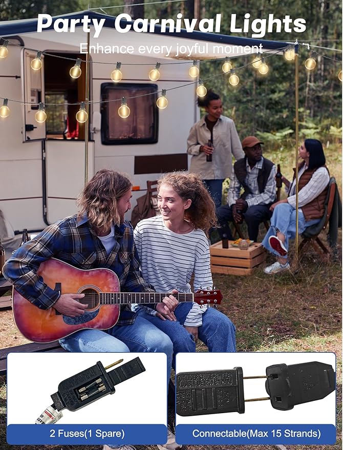 - Bright & Energy Efficient: 50FT G40 LED outdoor string lights contain 50 plastic LED bulbs and 2 spare bulbs. 1.5-inch bulbs adopt E12/C7 sockets, 0.6 watt per bulb, g40 globe string lights can help you save more electricity