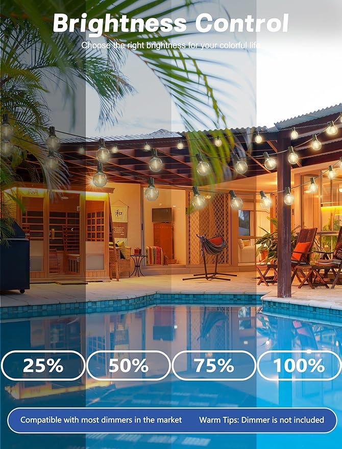 - Dimmable & Widely Used: Compatible with most dimmers (dimmer not included). Our commercial outdoor patio lights are perfect for balcony, garden, gazebo, tent, BBQ market, cafe umbrellas, wedding decoration