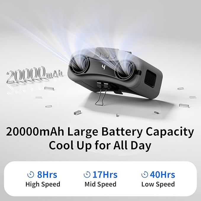 Socool 20000mAh Portable Waist Fan Clip on Wearable Belt Personal Fan Rechargeable, 40H Cooling Battery Operated with 10 Speeds & Dual Air Outlets, Neck Fans Hanging for Outdoor Jobsite Camping