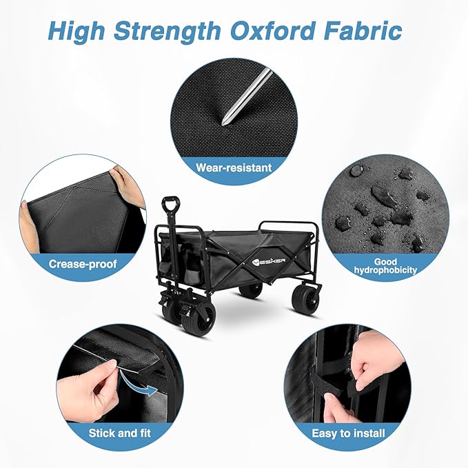 - Durable & Sturdy Construction - Built with a robust iron frame and 600D Oxford fabric, this foldable wagon is designed to withstand heavy loads and rough terrains, ensuring long-lasting performance.