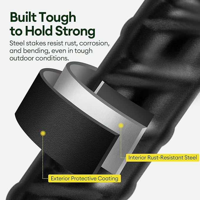 - Easy to Hammer into Ground: Drive into tough soil—clay, gravel, or rocky terrain—with ease; Sharp chisel-point ends let you push or hammer stakes in smoothly, no bending, no hassle