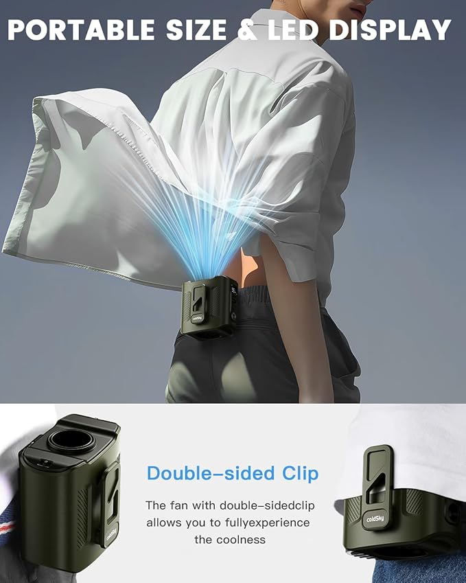 coldSky Portable Waist Fan, 10000mAh Rechargeable Belt fan with LED Display & 60H Runtime, 11000RPM Brushless Motor Shirt Fan, 5 Speeds Neck Fan for Outdoor Work, Camping, Farm, Jobsite (Green)