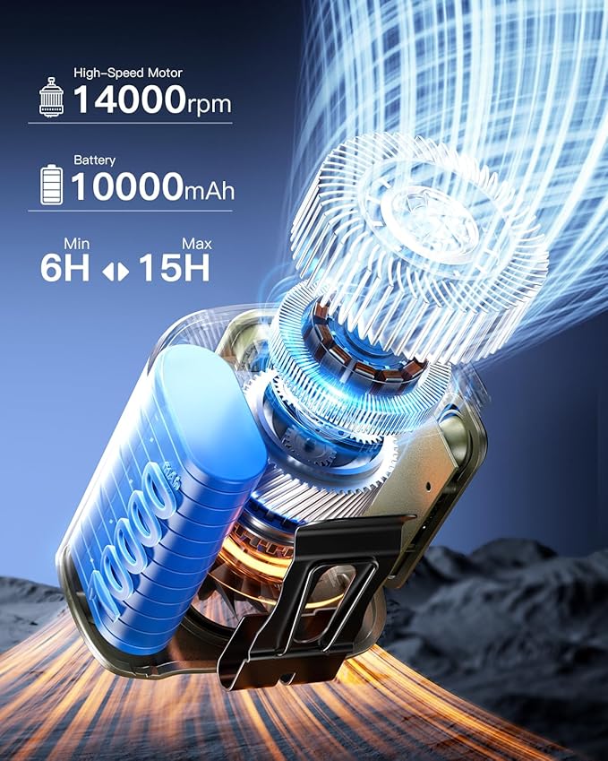 - 【10,000mAh Battery & LED Display】Never worry about sudden power loss! The 10,000mAh rechargeable battery provides up to 16 hours of runtime (varies by speed). The clear LED display shows real-time wind speed and battery level, so you always know when to recharge. Stay cool all day!