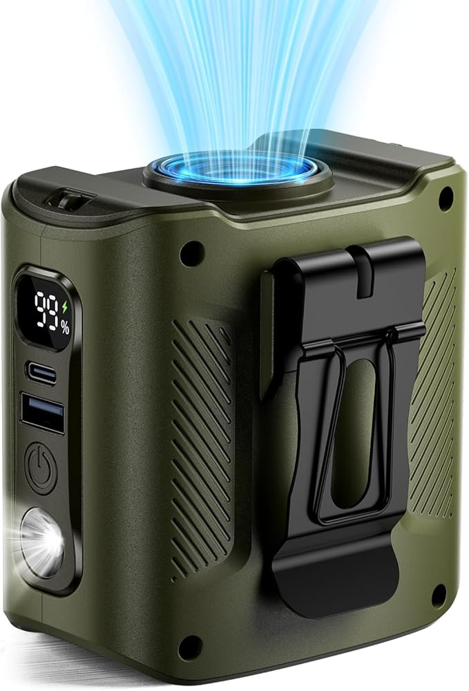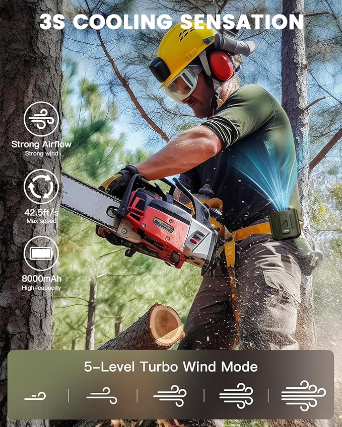 - 【4-in-1 Versatile Cooling】More than just a waist fan—it’s a multi-functional cooler! Use it as a neck fan, handheld fan, or desk fan, and You can even charge your phone/tablet anytime, anywhere. Ideal for construction sites, farming, deliveries, gardening, hiking, fishing, and all indoor/outdoor activities