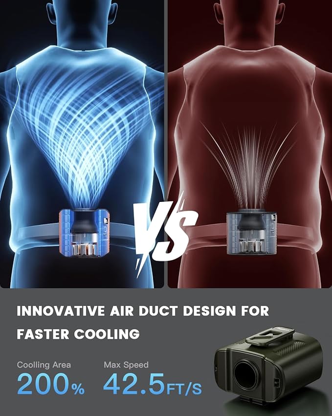 - 【Powerful & Upgraded Airflow】Experience ultra-strong cooling with our upgraded portable waist fan! Equipped with a high-speed 14,000 RPM brushless motor and an optimized air duct design, it delivers 2-2.5x stronger airflow than traditional fans. Enjoy a concentrated breeze at speeds up to 19.8 ft/s, perfect for beating the heat.