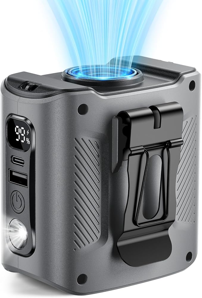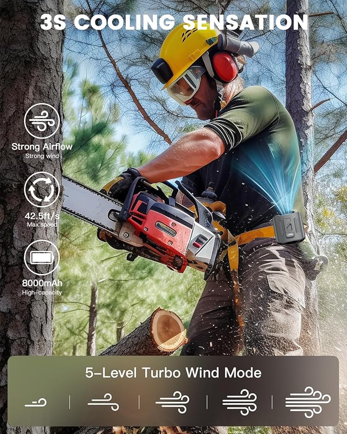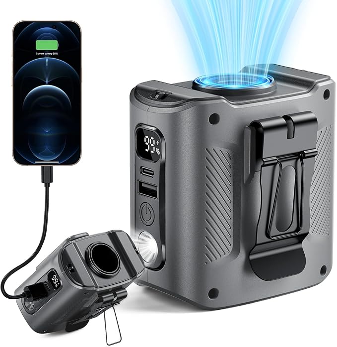 - 【4-in-1 Versatile Cooling】More than just a waist fan—it’s a multi-functional cooler! Use it as a neck fan, handheld fan, or desk fan, and You can even charge your phone/tablet anytime, anywhere. Ideal for construction sites, farming, deliveries, gardening, hiking, fishing, and all indoor/outdoor activities
