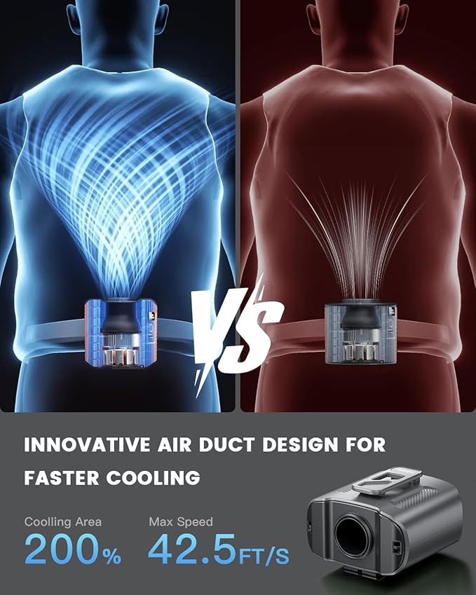- 【Powerful & Upgraded Airflow】Experience ultra-strong cooling with our upgraded portable waist fan! Equipped with a high-speed 14,000 RPM brushless motor and an optimized air duct design, it delivers 2-2.5x stronger airflow than traditional fans. Enjoy a concentrated breeze at speeds up to 19.8 ft/s, perfect for beating the heat.