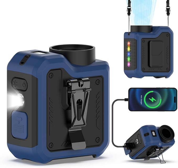 - 【Durable and Outdoor-Ready】: Designed for rugged environments, this fan features a high-strength manganese steel clip for a secure grip and a shockproof silicone cover for drop resistance. It’s perfect for outdoor activities like hiking, camping, climbing, jogging, travel, commuting, kitchen, delivery workers, construction work, or farming, ensuring durability and reliability in any condition.