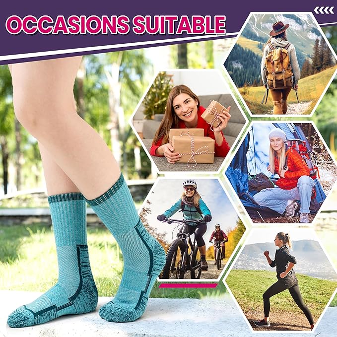 - PREMIUM MATERIAL-These women wool hiking socks are made of 68% Merino Wool, 25% Polyester, 5% Nylon, 2% Spandex, These women wool socks are soft comfortable, lightweight, wearable and sweat-wicking, so you can wear them in all season.