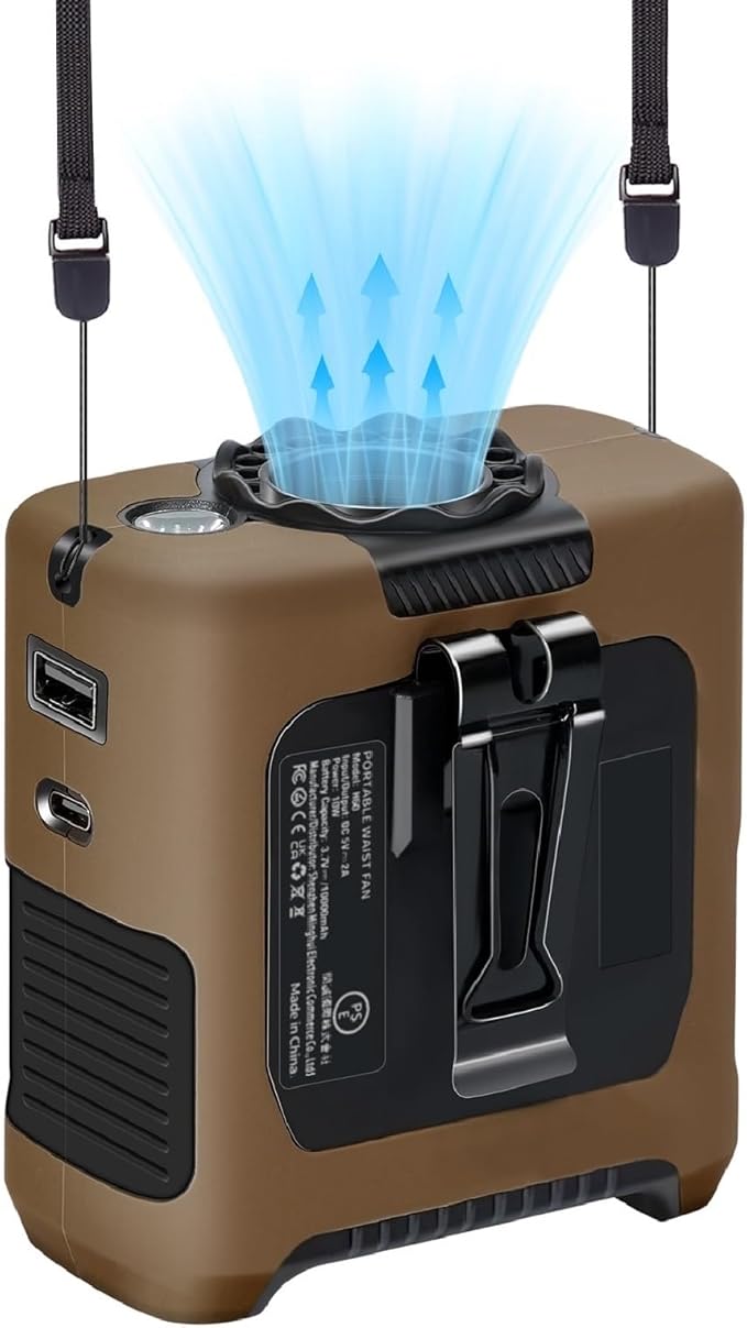 Portable Fans Strong Airflow Personal Waist Fan with Max 40H Runtime Hands Free Neck Fans Wearable Belt Fan for Outdoor Jobsite Camping and Traveling 5 Speeds USB-C Rechargeable 10000mAh (Brown)