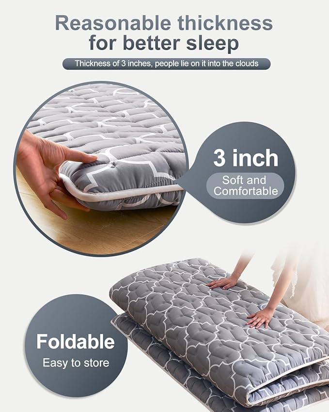 - Versatile Functionality - Perfect as a bedroom futon, living room futon, tatami mat, floor mat, sleeping mat, or tent mat. It also doubles as a children’s play mat, portable floor bed, or travel companion—lightweight enough to take anywhere in your car.