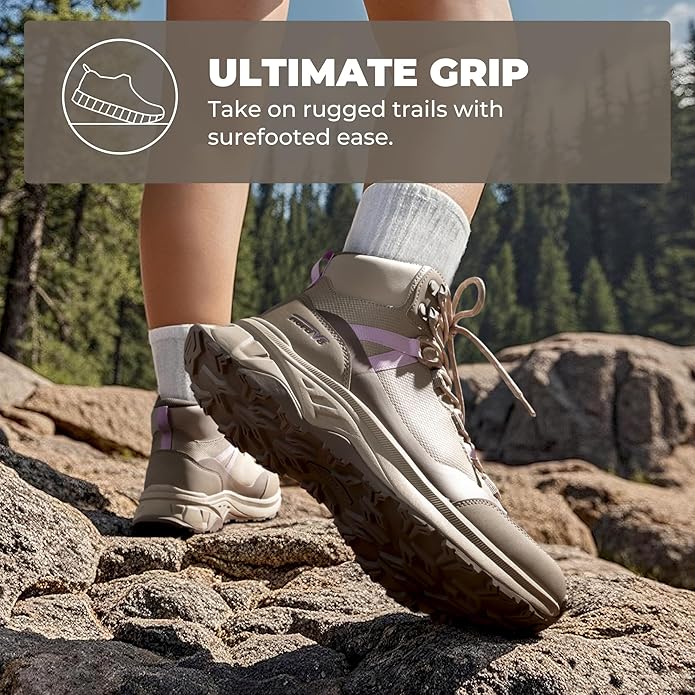 • Dominate Rugged Trails: Durable grip on these hiking shoes provides stability and traction on uneven terrains, enhancing safety during hikes. These boots are designed for women who seek dependable footwear for challenging trails.