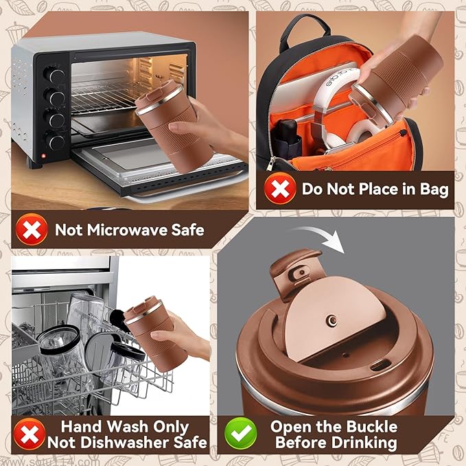- Secure Leak-Proof Lid: The mug comes with a carefully designed BPA-free lid that forms a secure seal, significantly reducing the risk of spills or leaks during movement. Perfect for driving, commuting, or multitasking at your desk. You can toss it in your bag or backpack with confidence.
