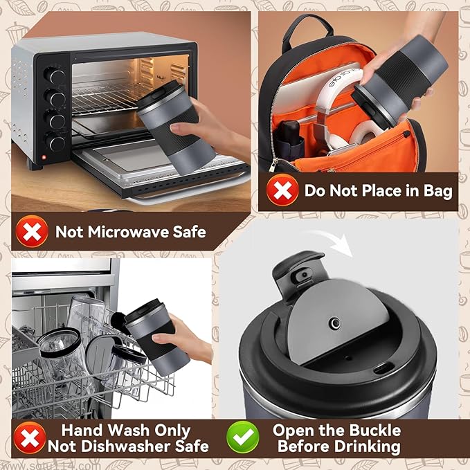 - Secure Leak-Proof Lid: The mug comes with a carefully designed BPA-free lid that forms a secure seal, significantly reducing the risk of spills or leaks during movement. Perfect for driving, commuting, or multitasking at your desk. You can toss it in your bag or backpack with confidence.
