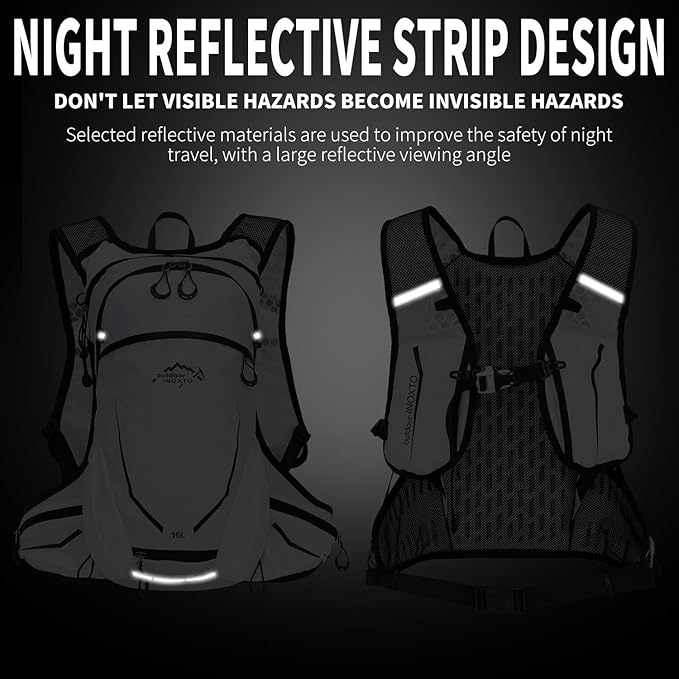 - 【Ergonomic Carrying System】Our IX INOXTO water bottle backpack is ergonomic. The back of the foam pad is soft and very comfortable. The chest strap can be slid up and down, and can also be adjusted left and right. Adjustable chest and waist measurements range from 31 inches to 57 inches. Suitable for most body types, it is the perfect hydrating backpack for man and women