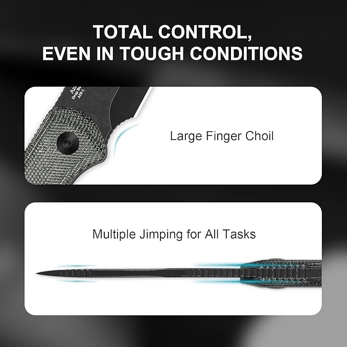 - Dependable Strength for Everyday Tasks: AEB-L steel provides razor-sharp edges and easy sharpening, making the mini horizontal carry fixed blade hunting pocket knife perfect for precision tasks; Its corrosion resistance ensures durability in both wet and dry conditions; Long spine jimping and wide finger choil offer a secure grip, while the front jimping near the tip provides non-slip control for precise cuts, even in wet conditions