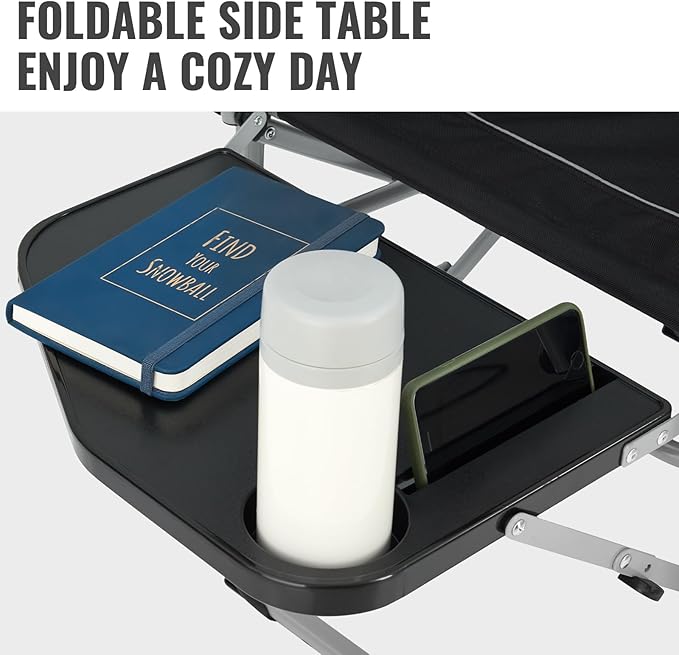 - FUNDANGO Camping Directors Chair with Side Table for Outdoor Portable Lightweight Camping Lawn Chairs with Storage Pockets Carry Straps for Camp Hiking Fishing Sports Adults Outside Black-2Pack
