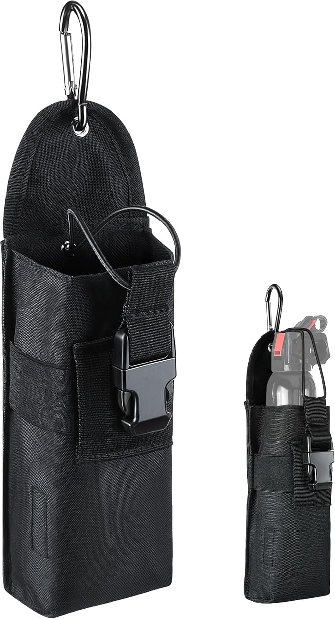 - Compatibility: Our portable holster is compatible with both 7.9 oz and 9.2 oz canister (no spray included); Its thoughtful design also accommodates flashlights, torches, and other equipment of similar dimensions. Whether you're navigating a dark trail or need to carry an extra utility can, this holster is your all in one solution, ensuring you're prepared for any scenario nature throws at you
