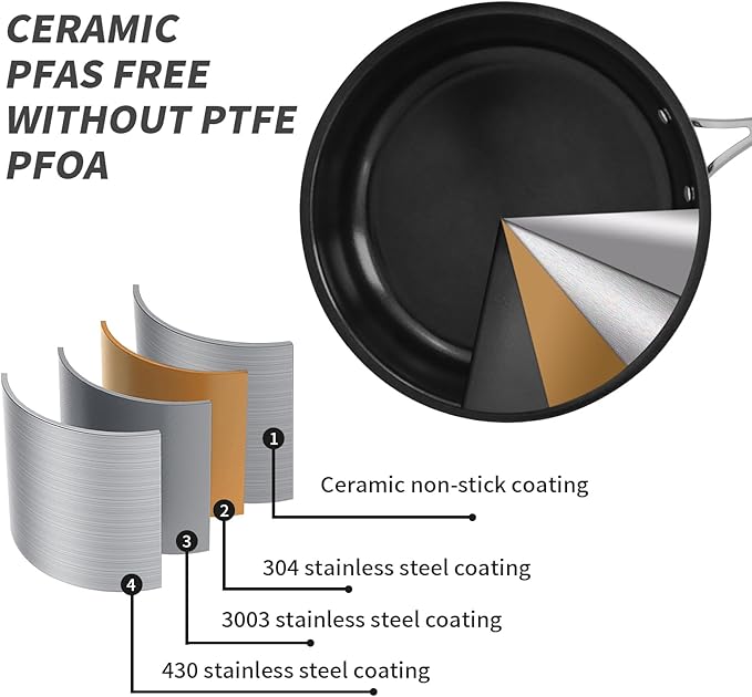 - Chef-Grade Build Quality: Built with a 4-layer reinforced coating, this 2.5mm thick, 6.3lb ceramic frying pan rivals cookware used by professionals. Designed in top-tier facilities also producing premium non stick frying pans, it offers superior heat retention, durability, and cooking precision.