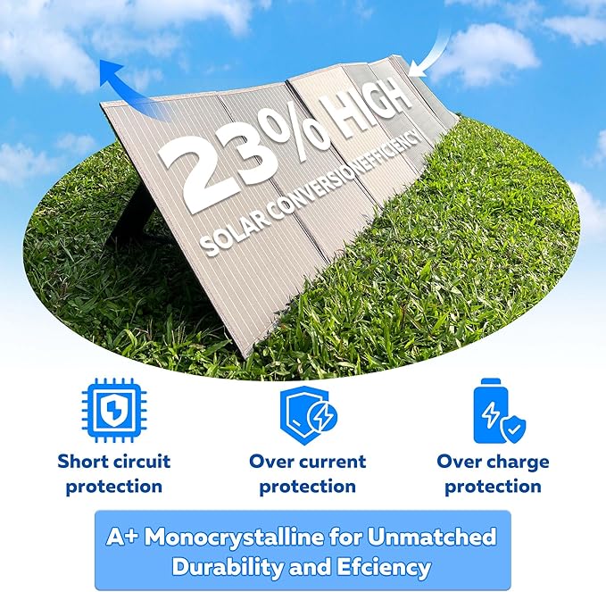 - [Eco-Friendly & Versatile Design]: The solar panel boasts a 23% high conversion rate, and the power station supports solar, car, and AC charging. Together, they deliver an eco-friendly, energy-efficient solution for all your power needs, from outdoor exploration to emergency preparedness.