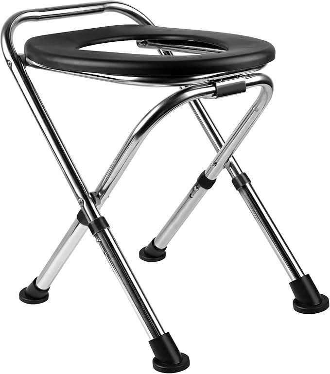 Upgrade Portable Toilet for Camping, Height Adjustable Travel Portable Potty for Adults, Stainless Steel Foldable Toilet for Car,Hiking,Beach and Camping Outdoor Use