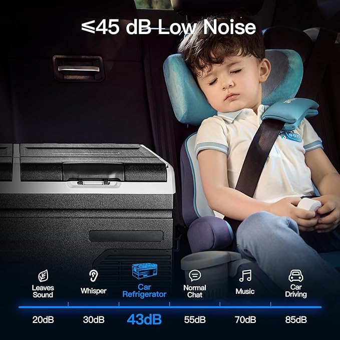 - 【ANTI-SHAKING】 BODEGACOOLER 12v fridge provides a silent and comfortable environment for you.Because of its overall external smooth lines and equipped with a multi-functional non-slip base, the lateral displacement is greatly reduced. When your car is climbing at an inclination angle of 30 degrees, the car portable freezer can still run stably.Our portable car refrigerator allows you to enjoy cold drinks in stable and quiet during the trip.