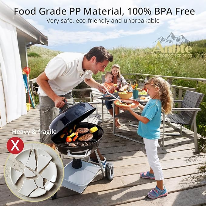 - Unbreakable & Lightweight for Everyday Use: Made from sturdy PP plastic, this camping plates and bowls set is lightweight yet tough enough to handle accidental drops or outdoor conditions. Whether it’s a backyard BBQ, hiking trip, or family dinner, this camping dinner set is reliable and easy to carry