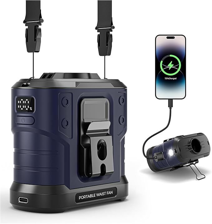 - ๐ง๐-๐ข๐ง-๐ ๐๐ฎ๐ฅ๐ญ๐ข-๐ ๐ฎ๐ง๐๐ญ๐ข๐จ๐ง ๐๐จ๐ซ๐ญ๐๐๐ฅ๐ ๐ ๐๐ง: The Nodinsy Waist Fan stands out with its five versatile functions. It serves as a convenient cool clip fan under the shirt by default, but can also be easily transformed into either a desk fan or a neck fan to suit different usage scenarios. Moreover, this camping fan is equipped with a built-in flashlight and can double as a power bank, offering essential support and convenience for your outdoor work, camping trips, and other adventures.